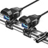 タイラップを通して縛り付けるだけの超簡易固定方式を採用。設置が簡単になり、コストダウンに繋がりました。電源12VはカエディアQIスマホホルダーと同一仕様、SAEハーネスはギボシからクワガタ、平型分岐に変換可能。外したいときは車両に配線を残したままSAEコネクターを抜くだけで取り外し可能。